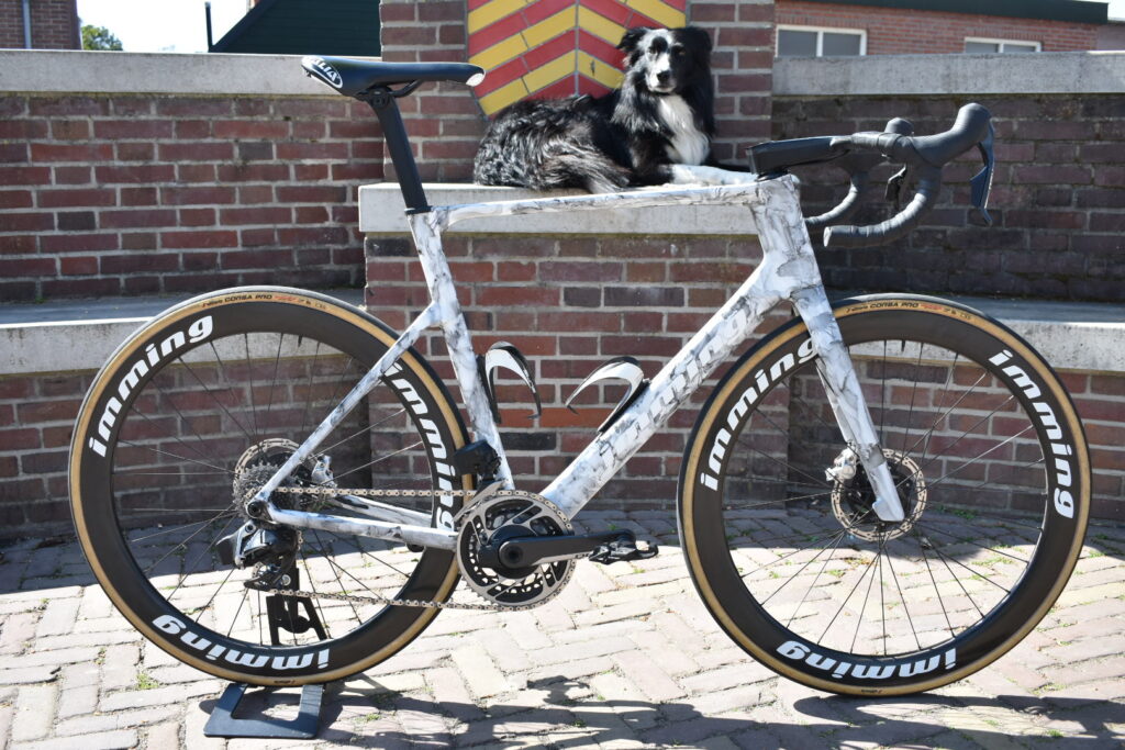 De Imming Strada is een volledig carbon racefiets die snelheid en souplesse naadloos combineert. Ontwikkeld in eigen huis, getest in Nederlandse koersen en gebouwd met oog voor detail.