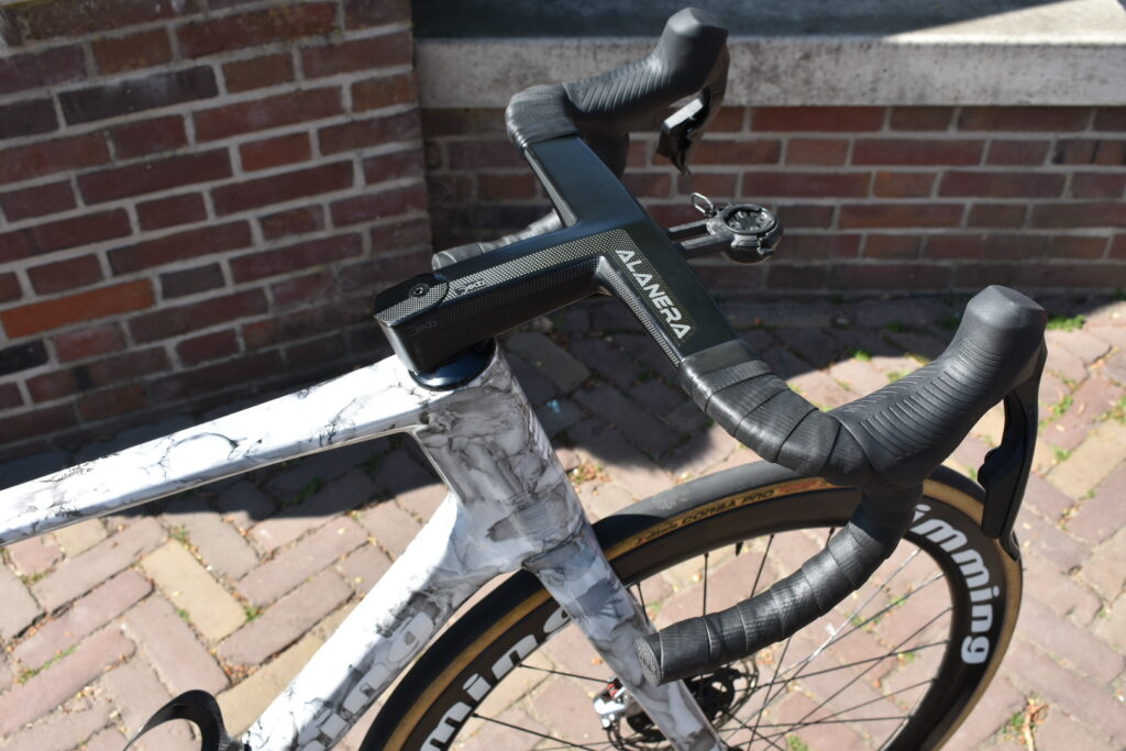 Of je nu solo door de polder rijdt of in het peloton op kop sleurt: de nieuwe Imming Strda biedt de perfecte balans tussen snelheid en comfort. Dankzij een uitgebalanceerde geometrie is dit frame zowel geschikt voor ontspannen lange ritten als serieuze koersdagen. Het hart van deze fiets is een volledig nieuw carbon frame met geïntegreerd cockpit-stuur en carbon zadelpen. Dit geeft de fiets een strakke, aerodynamische uitstraling én zorgt voor directe stuurrespons. De afwerking is niet alleen functioneel, maar ook een visueel statement.
